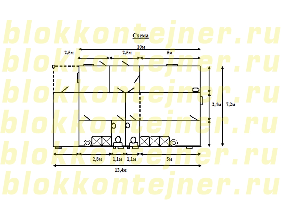 Блок - модуль  10,0 *7,2*2,5м  состоит из 6-ти шт. блок-контейнеров